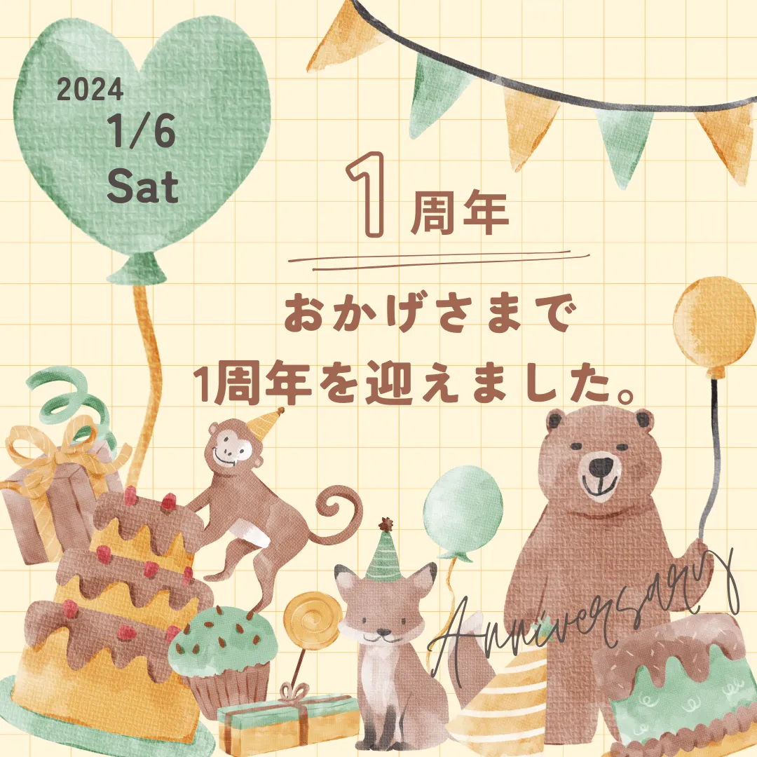 こんにちは、本日おかげさまで1周年を迎えました✨✨✨