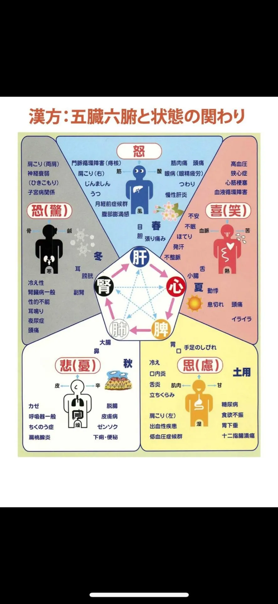 五行を臓器に置き換え→肝と心、心と脾、脾と肺、肺と腎、腎と肝
